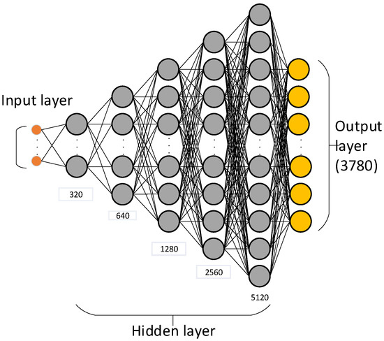 This design method satisfies that the Q value is gradually reduced to a non-maximum value when the action is illegal. At the beginning, a larger exploration rate was set, and, as the number of training iterations increased, it decayed according to the rate of ε = (1 − decay) × ε, where ε = 1, decay = 0.001, and the minimum value of ε is 0.02. The fully connected network used was a six-layer fully connected neural network. The input dimension of the network was the number of states, and the output was the Q value of each action, as shown in Figure 4.