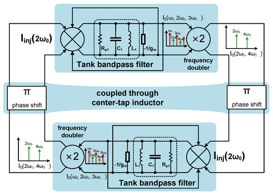 - Kuo, N.C.; Chien, J.C.; Niknejad, A.M. Design and Analysis on Bidirectionally and Passively Coupled QVCO with Nonlinear Coupler. IEEE Trans. Microw. Theory Tech. 2015, 63, 1130–1141. [Google Scholar] [CrossRef]