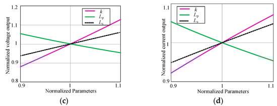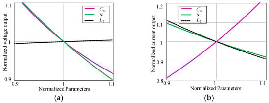 Sensitivity analysis of the topology was performed in order to verify the sensitivity of the system at this parameter. The variation of CV-mode normalized output voltage and CC-mode normalized output current with Cs, α and L2 normalization parameter is shown in Figure 8. It is obvious that the change of Cs is sensitive to the output current. At the same time, the value of L2 is not sensitive to the variation of constant voltage output.