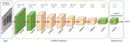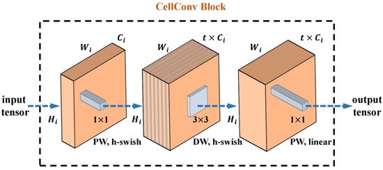 Inspired by the efficient convolutional blocks of the MobileNet series, we designed a more lightweight building block, named CellConv block. The details of the implementation are provided in Table 1. The CellConv block aims to optimize the trade-off between computational cost and detection speed by transforming the input information to a high-dimensional space by a relatively small expansion factor .