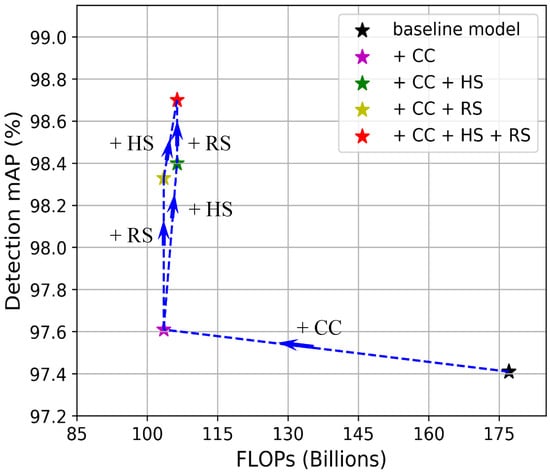 Deeper models are known to easily fall into gradient vanishing or exploding, which makes it difficult for the model to reach convergence. In this situation, our 22-layer deep model showed inferior performance on the detection mAP. However, upon the addition of the residual connection we built, as shown in Figure 10 and the third row of Table 5, we achieved an improvement of 0.72% (97.61% vs. 98.33%). This indicates that the residual block is critical to improving the performance when the model goes deeper, which is not surprising.