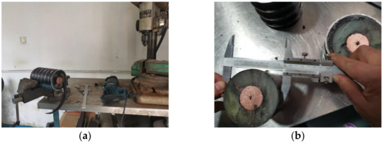 Due to the tight fit of the cables, elastic deformation occurs due to the interface pressure after the cable leaves the factory. After this elastic deformation, the cable can return to its original shape when compression is released. In the cable deformation experiment (Experiment 2), we used changes in the inner and outer diameters of the cable conductors under different stresses before and after stripping to determine the deformation value, and then calculated the deformation of each layer using Equations (6)–(13) in Section 2.3.2. External force on the outermost polyethylene sheath was zero, and the outer pressure of the inner layer was equal to the inner pressure of the outer layer in opposite directions. The experimental scheme is as follows: