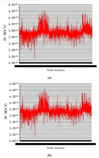 To more clearly demonstrate the value of the interface pressure on the conductor, we detected the conductor contact surface, as shown in Figure 11. The actual data that we obtained are shown in Figure 12. The abscissa in Figure 14a,b is the node position, and the ordinate is the interface pressure value.