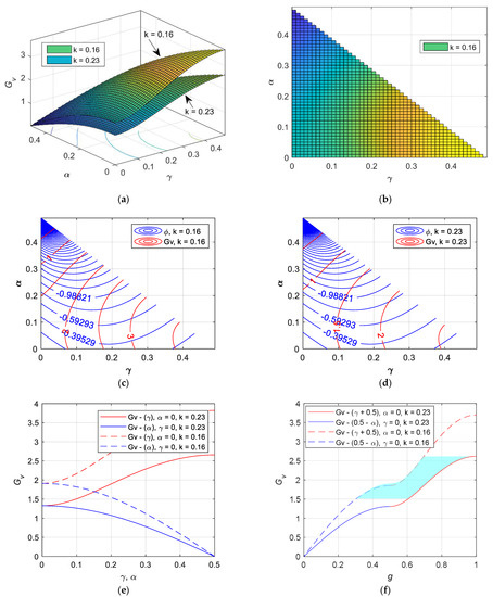 The voltage gain of TL rectifier: (a) a 3D plot of voltage gain for k = 0.23 and 0.16; (b) a 2D plot of voltage gain for k = 0.16; (c) plot of GV and φ for k = 0.16; (d) plot of GV and φ for k = 0.23; (e) plot of GV in optimal trajectory; (f) plot of GV operating region in optimal trajectory.