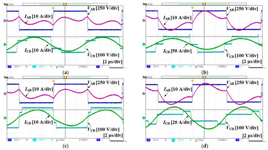 Measured waveforms of inverter and rectifier: (a) ; (b) ; (c) ; (d) .
