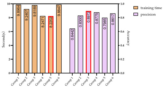 To select the physiological features that can contribute the most to evaluating the LIE levels of college students, we implemented SVM with the RBF kernel function. Based on Section 2.4.3, Table 5, and Figure 6, Group 3 (including PR, attention score/relaxation score, and high alpha wave) performs best with the highest prediction accuracy rate of 89.72%, followed by 87.75% for Group 4 with a difference of 1.97%. From Figure 7, we can observe that the training time of Group 3 is 9.8189 s, which is 1.5987 s slower than the 8.22 s of the fastest, Group 5. When we added the feature SpO2 to Group 5, although the training time is the shortest among all the groups, the prediction accuracy rate is not the highest. Considering synthetically, when an SVM classifier with RBF is used as a classification model, with PR, the ratio of attention score and relaxation score, and the high alpha wave of EEGs are being used as eigenvectors, the classification effect performs the best.