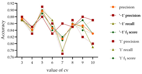 While training the SVM model, cross-validation is a vital parameter that needs to be considered (mentioned in Section 2.5). Table 6 shows the experimental results with different values of cv, ranging from 3 to 10.