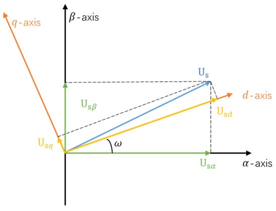 where uabα and uabβ are the components of the grid-side voltage in the α-β static coordinate system. Through the conversion relationship, the mathematical model in the d-q rotating coordinate system can be expressed as