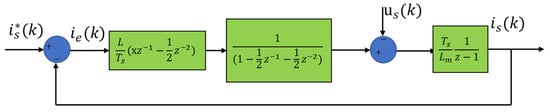 Since the algorithm described above includes the term (k), i(k) can only be obtained when the switching period [k, k + 1] ends. The time k is also the control point of the PWM rectifier. Therefore, in the previous switching cycle [k − 1], it is necessary to consider all the sampling current errors and complete the entire calculation result. Therefore, this equation cannot be directly implemented in digital circuits, and it is necessary to convert i(k) is approximately replaced by the value of the first two switching cycles. Then, the expression can be rewritten as