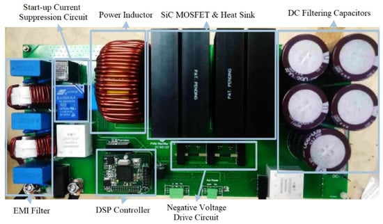 As shown in Table 4, the predictive current coordinate rotated control algorithm is used. A power analyzer is added to the input end to test the overall efficiency of the system at a VAC of 240 V and VDC of 400 V. The highest efficiency reaches 97.02%.