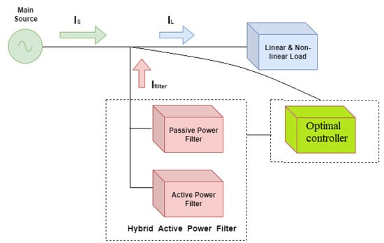 The basic topology of HAPF for the system is shown in Figure 1. This system consists of a power supply (voltage source), HPAF and a nonlinear load. As previously discussed, HAPF is mainly the combination of PPF and APF [8,19].