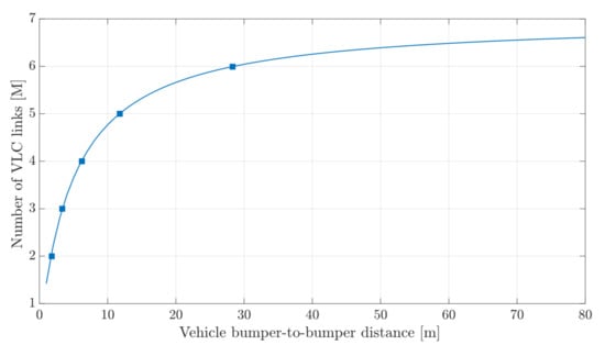 Here is the vehicle length. Figure 4 shows the calculated number vehicles that have a VLC link with the target VLC receiver.