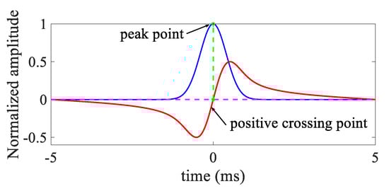 The Hilbert transform is widely used in analyzing the instantaneous amplitude and frequency of signals, and its physical meaning is essentially an all-pass network with a phase lag . By its physical meaning, it is easy to find that after the Hilbert transform of the envelope signal, the peak of the envelope corresponds to the forward over-zero point of the transformed signal, so the Hilbert transform is used in this paper to achieve effective detection of the peak of the envelope. The Hilbert transform of a real signal is defined as follows [28]: