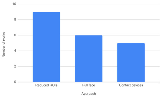 In [6,10,11,12,15,18,21,39,40], the authors have reduced the ROIs of the face using facial landmark detectors, while [9,16,17,22,38,42] have used the full face as model input. In [10,21], the authors have removed of irrelevant signals such as tremor, illumination changes, and so on in order to locate and cut out ROIs to estimate heart rate. In [15], it was demonstrated that using either the whole face or ROIs offers positive results for heart rate estimation, but both have advantages and disadvantages. When the whole face is used, there is extra processing to clean up the signals. When there is ROI clipping, [15] has pointed out that, despite requiring less processing in terms of treating irrelevant regions, the provision of a consistent detection of face landmarks to smooth noisy signals was a challenge. In [6,9,10,11,12,15,16,17,18,21,22,38,39,40,42], heart rate was estimated using face videos, while [1,5,9,41,43] have estimated additional physiological signals using contact devices or heart rate estimation techniques.