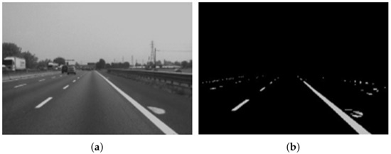 - Duan, J.; Zhang, Y.; Zheng, B. Lane line recognition algorithm based on threshold segmentation and continuity of lane line. In Proceedings of the 2016 2nd IEEE International Conference on Computer and Communications (ICCC), Chengdu, China, 14–17 October 2016; pp. 680–684. [Google Scholar]