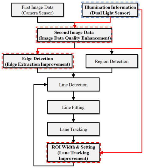 Lee, Y.; Park, M.-k.; Park, M. Improving Lane Detection Performance for Autonomous Vehicle Integrating Camera with Dual Light Sensors. Electronics 2022, 11, 1474. https://doi.org/10.3390/electronics11091474