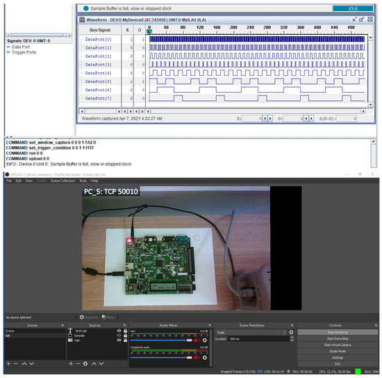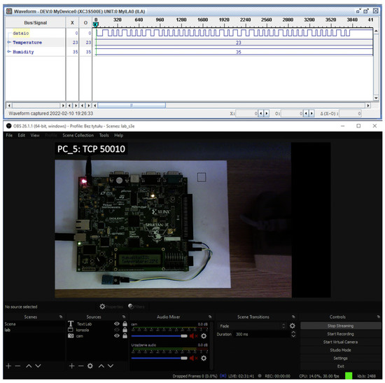 In the second stage, it is necessary to prepare a protypical stand consisting of a board with FPGA connected to a PC. Specific output ports of the test board must be connected to an oscilloscope or logic state analyzer in advance. The third and final step is to mount two cameras facing the front panel of the measuring device and the FPGA board. The cameras are to be controlled by video streaming software. In this way, the remote user can simultaneously view the FPGA board as well as the current readings of the apparatus located in the laboratory room.