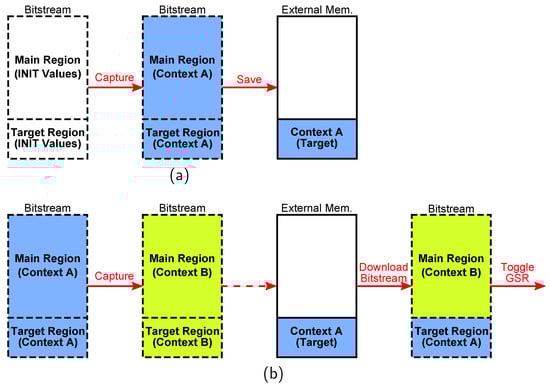 - Morales-Villanueva, A.; Gordon-Ross, A. On-Chip Context Save and Restore of Hardware Tasks on Partially Reconfigurable FPGAs. In Proceedings of the International Symposium on Field-Programmable Custom Computing Machines (FCCM), Seattle, WA, USA, 28–30 April 2013; pp. 61–64. [Google Scholar]