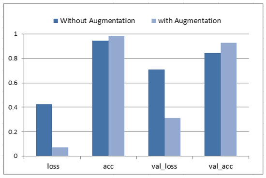 Effect of data augmentation on enhancing the proposed model classification’s loss and validation accuracies.