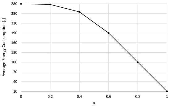 In this part of numerical analysis, we will adjust the value of , where N is set to 20 UAVs. Figure 3 and Figure 4 give the average sum rate in Gbps and average energy consumption in Joule of the UAVs using BCMP-MAB algorithm against the value of . When is equal to 0, only candidate hotspots with high UCB values, i.e., high average spectral efficiencies, are picked in group of UAV n as given in Algorithm 1. This results in high average sum rates but at the expense of high UAV energy consumption. On the other hand, when is equal to 1, all available hotspots are included in . This results in low UAV energy consumption as the lowest energy consumption hotspot will always be selected by UAV n, but the expense of low average sum rate. From both figures, is chosen as a sufficient value of as given in Table 1. This is because, at , the average sum rate is slightly reduced by from its maximum value, while the average energy consumption is highly reduced to from its maximum value.