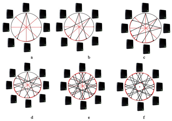 When the charger is at point 1, the theta is 60 degrees, and the maximum distance is dependent on the charger to send the signal, as Powercast 35903 has a range of 80 feet [29], so when the charger transmits the energy in a circular form, as shown in Figure 3, the points are 1 foot from each other. This means that the lines are uniform, and one foot away, they intersect the circle. Considering two straight lines, a1x + b1y + c1 and a2x + b2y + c2, we will use the following equation: