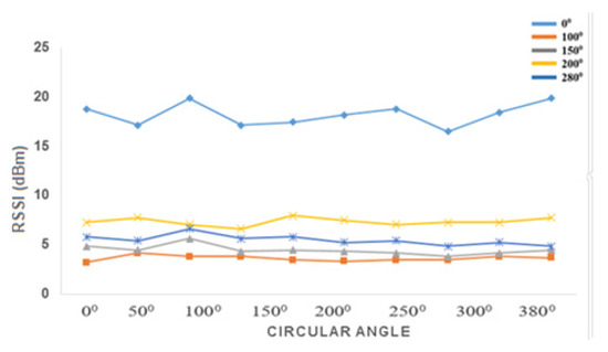 4.2. RSSI of Dipole Antenna during a Circular Tour