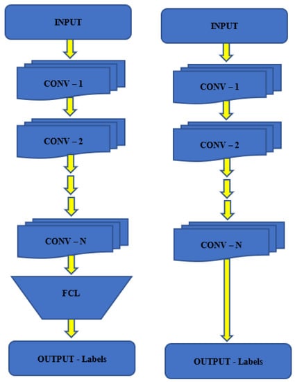 (Left): The original CNN network architecture. (Right): Removing the FC layers from CNN (this will serve as our extracted features).