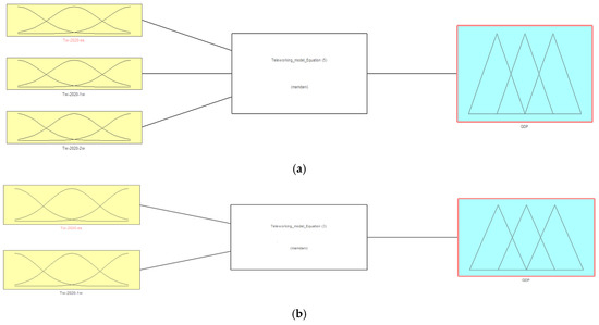 In this study, starting from Equations (3)–(5) and based on a fuzzy inference system, the following fuzzy models were considered (see Figure 4).