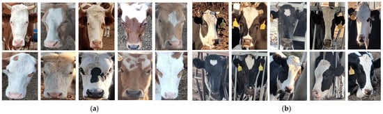 Bovine facial image data. (a) Facial images of Simmental cattle. (b) Facial images of Holstein cow.