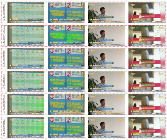 We collected a large-scale multi-type text dataset to test the text detection task. Specifically, we first invited 15 computer majors to collect a large number of news videos and live videos from the Internet (Bilibili (https://www.bilibili.com/), CCTV (https://www.cctv.com/), and YouTube (https://www.youtube.com/) accessed on 23 January 2022). Then, three domain experts were invited to choose high-quality videos. Finally, 20 videos were selected after two rounds of cross-screening. These videos were divided into a training set with 13 videos and 29,534 frames and a test set with 7 videos and 10,806 frames.