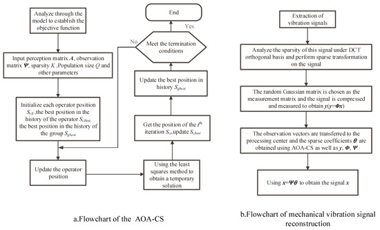The algorithm has been introduced so far, and the flow chart of the algorithm and the flow chart of the mechanical vibration signal reconstruction is shown in Figure 2.