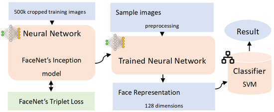 - Schroff, F.; Kalenichenko, D.; Philbin, J. Facenet: A unified embedding for face recognition and clustering. In Proceedings of the IEEE Conference on Computer Vision and Pattern Recognition, Boston, MA, USA, 7–12 June 2015; pp. 815–823. [Google Scholar]