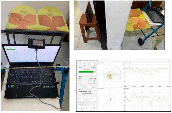 In this study, we used an antenna to detect objects behind the wall. The antenna used is MLPT by connecting it to a portable nano VNA that works at a frequency of 0.5–3 GHz. The antenna and the detected object are varied in distance to the wall. The detected object is a laptop varying the object’s distance from the wall and the detection process is carried out by placing the antenna on the E-plane. The antenna is connected to the VNA and the VNA is connected to the laptop. The Scattering signal received will be seen on the laptop display as shown in Figure 15.
