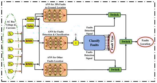 ANN-based schematic representation for fault detection, classification, and location.