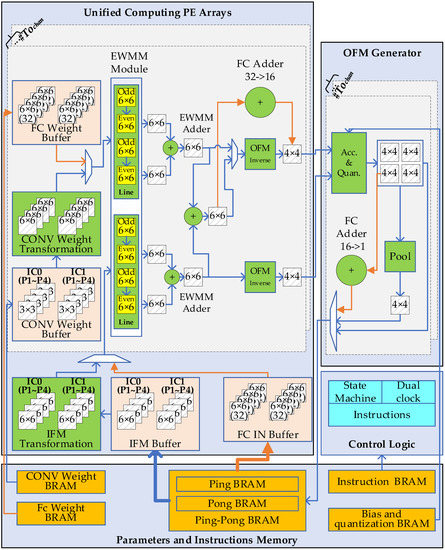 - Liang, Y.; Lu, L.; Xiao, Q.; Yan, S. Evaluating Fast Algorithms for Convolutional Neural Networks on FPGAs. IEEE Trans. Comput. Des. Integr. Circuits Syst. 2020, 39, 857–870. [Google Scholar] [CrossRef]