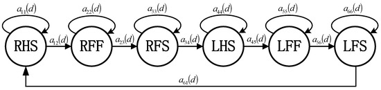 Figure 11 represents the relationship between gait phases, using a left-to-right model without jumps. In this model, only transition to the next stage and self-transition are allowed.