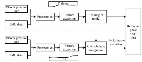 In recent years, the study of rehabilitation training for elderly and hemiplegic patients is a very popular field of research. Relevant studies have suggested that during rehabilitation training, the utilization of walking training institutions to assist patients in training can better combine the three elements of weight-bearing, stride and balance, so as to correct abnormal gait in the early stages [1,2]. Related research has shown that the elderly and hemiplegic patients in rehabilitation training who are more involved in the auxiliary movement will experience better rehabilitation effects [3]. Therefore, in this field, walking training institutions need to consider more the sporting ability of the wearer, so as to make up for the lack of users and reduce the intervention of users’ sports tasks. At present, many scholars have studied different auxiliary strategies for different users. In order to obtain a good rehabilitation training effect, walking training institutions must be able to stably follow the action of the human body in real time. Therefore, accurate recognition of human gait is very important for the control system of the walking training mechanism. Shepherd et al. [4] used predefined torque control to define the expected torque of the knee joint as a function of the knee joint angle, and then controlled the current of the motor to allow the knee exoskeleton to track the predefined torque. Strategies based on predefined torques often require the torque table or torque curve to be preadjusted for different wearers. Due to the limited nature of the predefined torque table, it is necessary to introduce some learning methods to increase the system’s adaptability to undefined parts. These learning methods are often more complex and require higher performance of the processor of the control system, and are not suitable for embedded exoskeleton systems. With the development of sensor technology, small, low-cost wearable devices have been widely used in the field of rehabilitation [5].