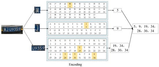 LP recognition requires characteristic encoding owing to the nature of LPs. To facilitate the loss calculation and reduce the risk of mischaracterizations, the characters must first be encoded reasonably when entering the recognition network. The encoding table of the first character is presented in Table 1. This Chinese character identifies the province.
