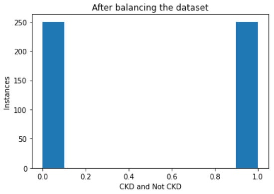 Figure 4 illustrates a bar diagram that depicts the instances of CKD and NOTCKD in the dataset after the balancing phase using the SMOTE algorithm.