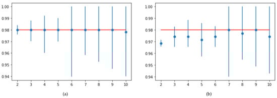 The trained model’s generalization capability can be validated using the 10-fold cross validation score. SVM and RF showed the same cross-validation score, equal to . However, in terms of test accuracy and recall score, SVM was more robust than RF. The 10-fold cross-validation of SVM and RF is represented in Figure 8.