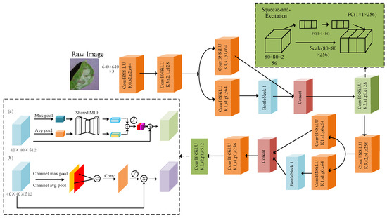 - Hu, J.; Shen, L.; Sun, G. Squeeze-and-excitation networks. In Proceedings of the IEEE Conference on Computer Vision and Pattern Recognition, Salt Lake City, UT, USA, 18–23 June 2018; pp. 7132–7141. [Google Scholar]