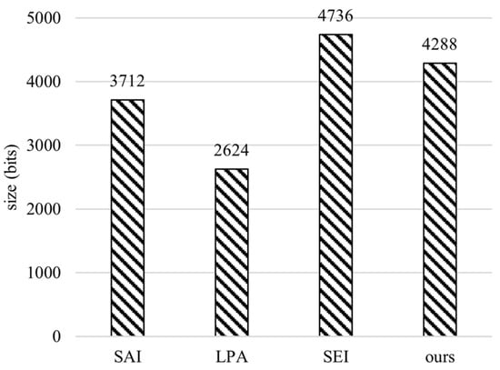 Since the communication overhead is much smaller in time than the calculation overhead, we used the data size to present the communication overhead. Figure 9 shows the amount of data transmitted for authentication under different schemes. The communication overhead of our scheme is 4288 bits, which is lower than that of SEI by reducing 9.46%, but higher compared to SAI and LPA. This is because more data needs to be transmitted when forging the random values of the chameleon hash function in exchange for the security of anonymity. Based on the security analysis, our scheme can provide good security under different scenarios in edge computing environments. Our scheme makes a good balance between security and authentication efficiency.