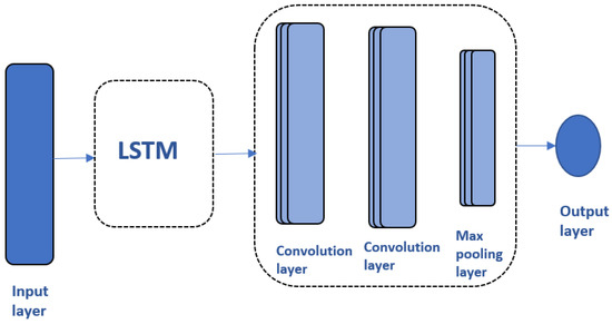 LSTM–CNN architecture involves both CNN and LSTM methods as shown in Figure 3 in order to make use of the benefits of both methods and accomplish excellent performance. Since CNN and LSTM show high performance in overcoming classification, detection, and recognition tasks [17], to using these three methods for the phishing detection task is promising.