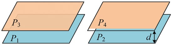 The most widely used coupler structure in the CPT system is shown in Figure 2, which is formed by two pairs of metal plates (P1, P2, P3, P4) stacked by each other with no contact. The distance d between P1 and P3 or P2 and P4 is the so−called transmission distance. Coupling capacitors Cij (i, j = 1, 2, 3, 4) are formed between plates Pi and Pj (i, j = 1, 2, 3, 4), which can be calculated as expressed in Equation (1):