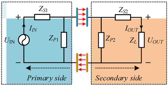 The SP compensation topology in the CPT system is shown in Figure 5, where UIN represents the output AC voltage of the high-frequency inverter, and ZL is the input impedance of the rectifier. It should be mentioned that ZL is resistive when the parasitic impedances of the rectifier are neglected, and the load can be considered as resistance. ZS1 and ZS2 represent the series compensation elements of the primary and secondary sides, respectively. The paralleled compensation elements of the primary and secondary sides are named ZP1 and ZP2.