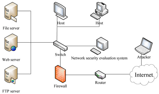 The experimental data in this paper comes from the network environment built by Jiang et al. [31]. The network environment is shown in Figure 5. First, a real hacker attacks, and various attacks are simulated. Second, by counting the number and types of attacks, and assessing the degree of damage to the host after the attack, a network security assessment system is established to obtain the current network security situation value. Every 30 min of the experiment, statistics are collected and the network security situation value is evaluated and calculated. Finally, 150 situation values are selected to form the sample data, and the possibility of large errors is eliminated through normalization so that the values are in the range of [0, 1], as shown in Figure 6.