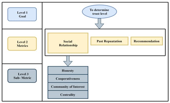 The rest of the present article has been detailed as follows: Section 2 depicts a comprehensive revision of relevant articles, while Section 3 deals with the classification of identified trust metrics as the basis for research composition. The methodology and background knowledge of unified fuzzy AHP are discussed in Section 4. Furthermore, Section 5 shows the application of the fuzzy AHP mechanism in a SIoT-based environment for truthful friend computing. Section 6 elucidates the ranking of the trust metric and trust sub-metric using native and universal criteria. Section 6 tabulates our findings and shows the comparison of the trust metric and trust sub-metric through the ranking of trust scores. Section 7 concludes the study.
