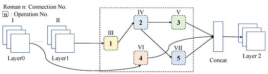 The blocks mentioned above contain three main operations, namely skip connect, convolution and pooling. Additionally, there are ten types of subcategory operations. The continuation strategy of these candidate operations between nodes can be expressed as follows: