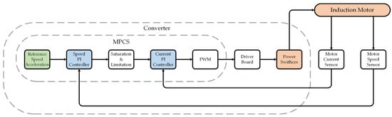 Trends in the development of modern control systems (CS) for power electronics converters dictate the requirements for the complexity of automation processes in soft starters for induction motors. In the field of predictive algorithms, CSs can be implemented both closed-loop using current, rotation, and magnetic flux sensors [,,] and open-loop without using feedback sensors [].