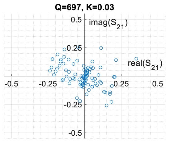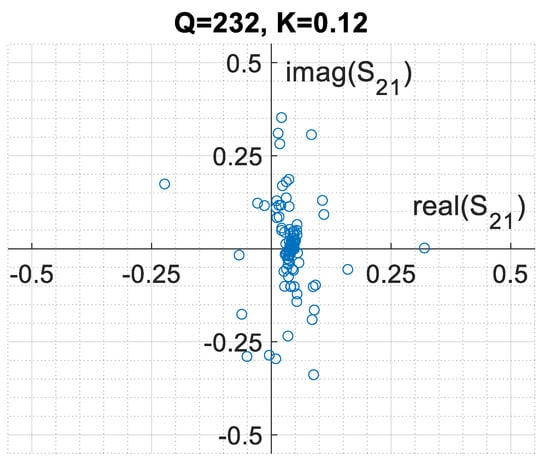 Scatter plot of and an indication of the Q and K parameters related to an empty RC (up) and the same RC with the insertion of lossy elements (down).